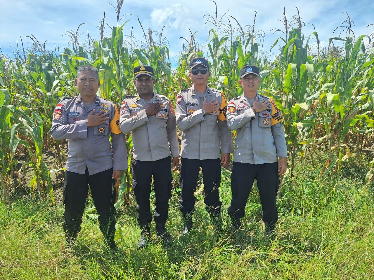 Papua – Dalam rangka mendukung program ketahanan pangan nasional, Bhabinkamtibmas Polsek Muara Tami melaksanakan pengecekan lahan jagung binaan di Kelurahan Koya Barat, Distrik Muara Tami, Selasa (21/04/2026).