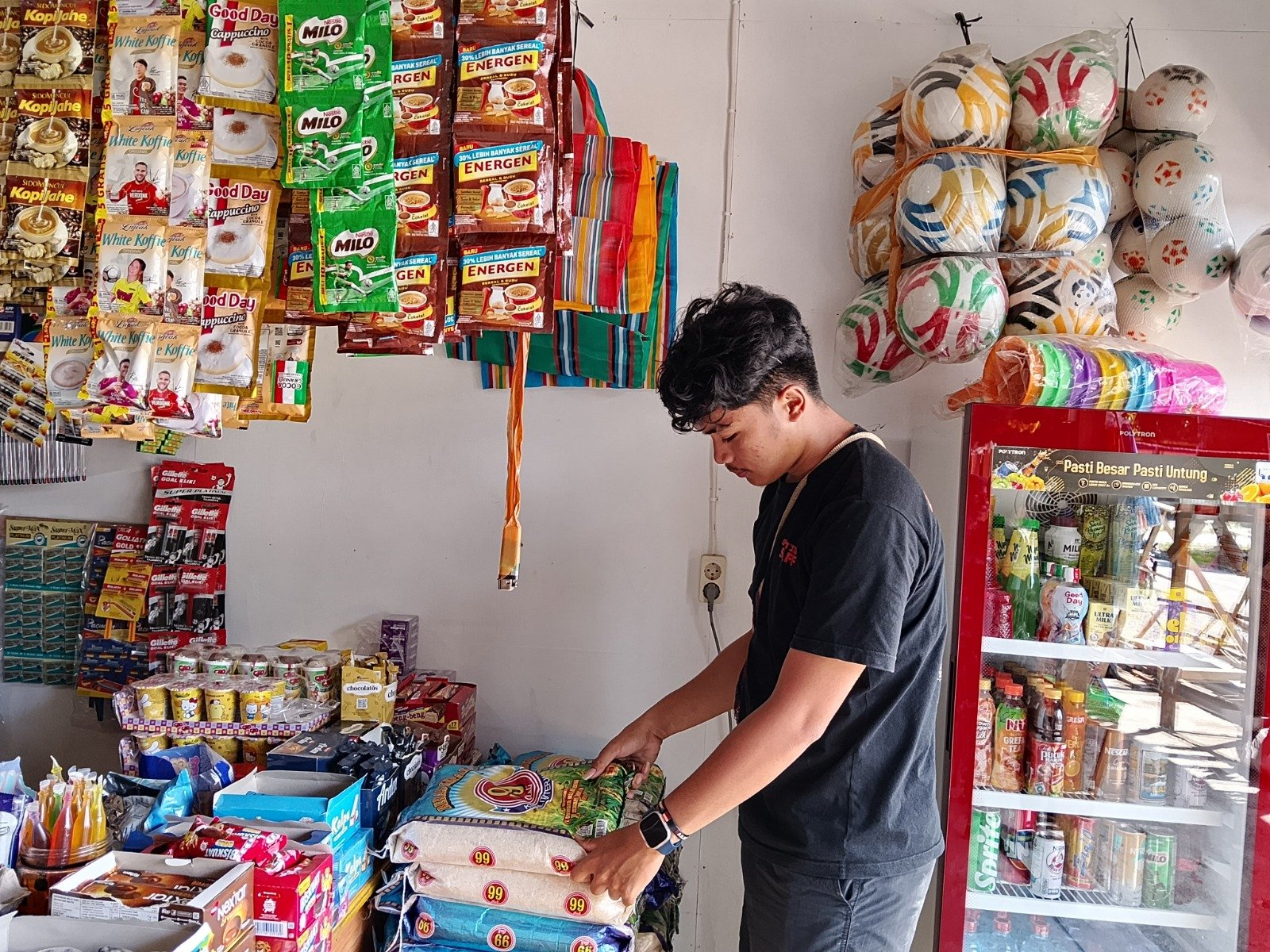 Dari hasil pengecekan, beras merek 99 Premium dijual Rp27.000 per kilogram, sedangkan beras Bunga Medium dijual Rp25.000 per kilogram. Gula pasir premium merek Gulaku dijual Rp35.000 per kilogram.